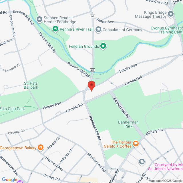 Please park in the parking lot or on the street heading towards the old stadium and Quidi Vidi Lake